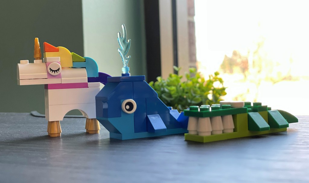 A: A lot goes into these little kits. There is a website we use for buying (mostly) used bricks that really keeps the cost low. We try to aim for about $1 per set total, give or take. I look for designs through the LEGO website or by searching online for other ideas. I will usually use an existing LEGO design, or find one and tweak it slightly so that it’s affordable. The design for the Unicorn, for example, is a combination of a couple of different unicorns I saw because some pieces on the original designs were out of our price range.